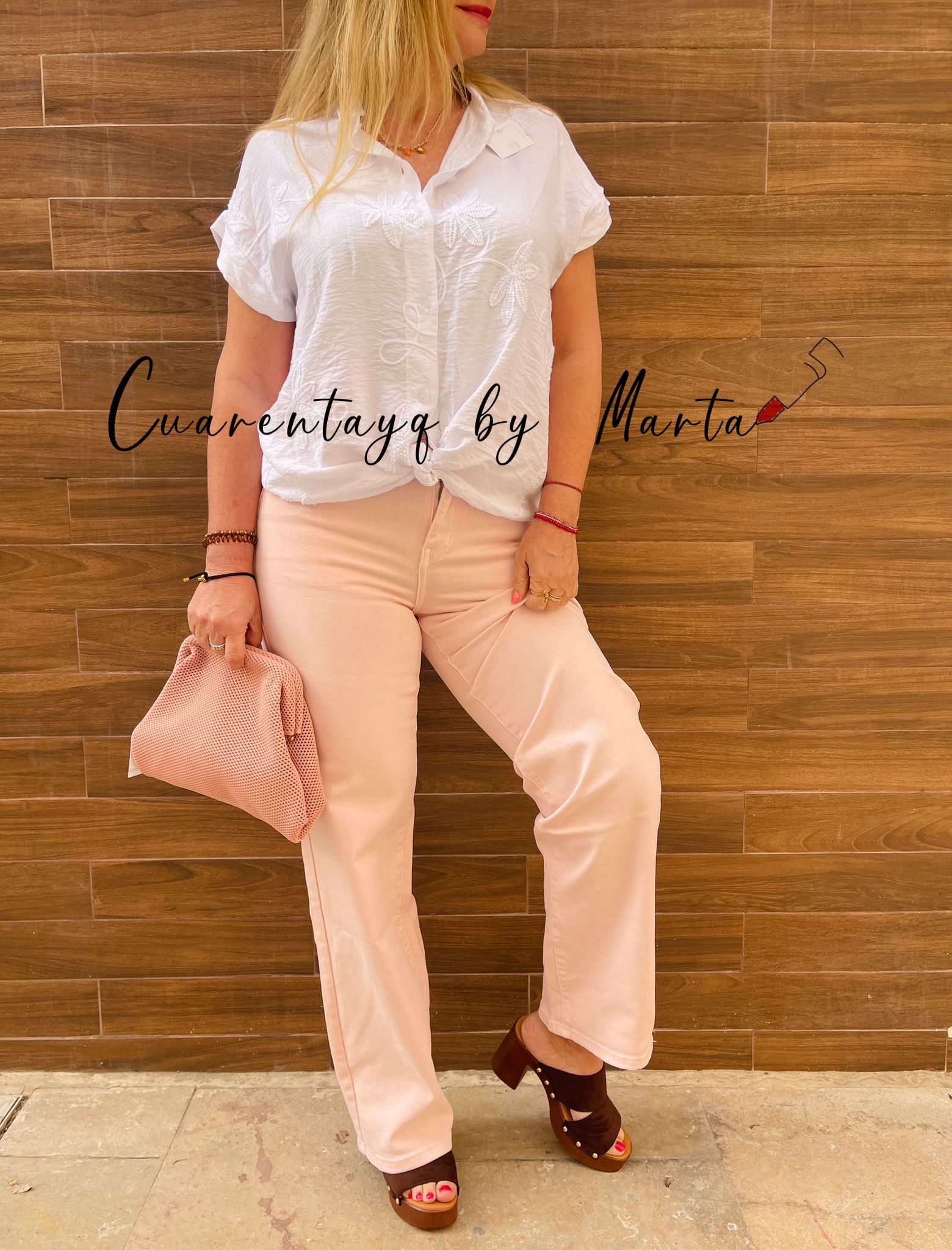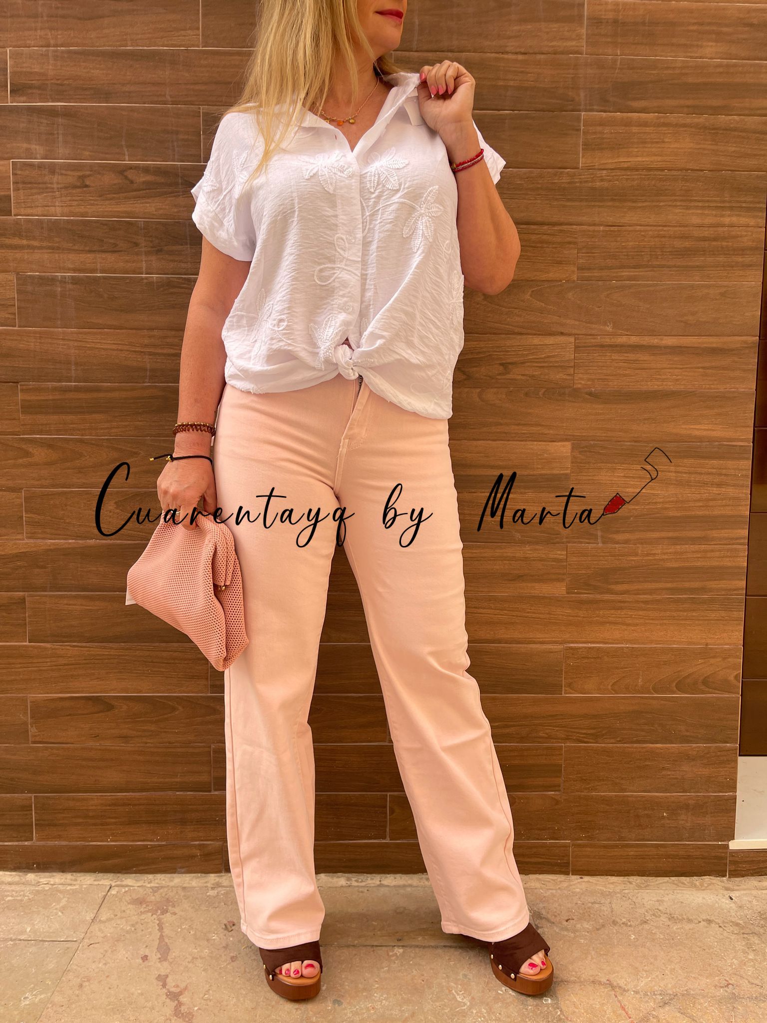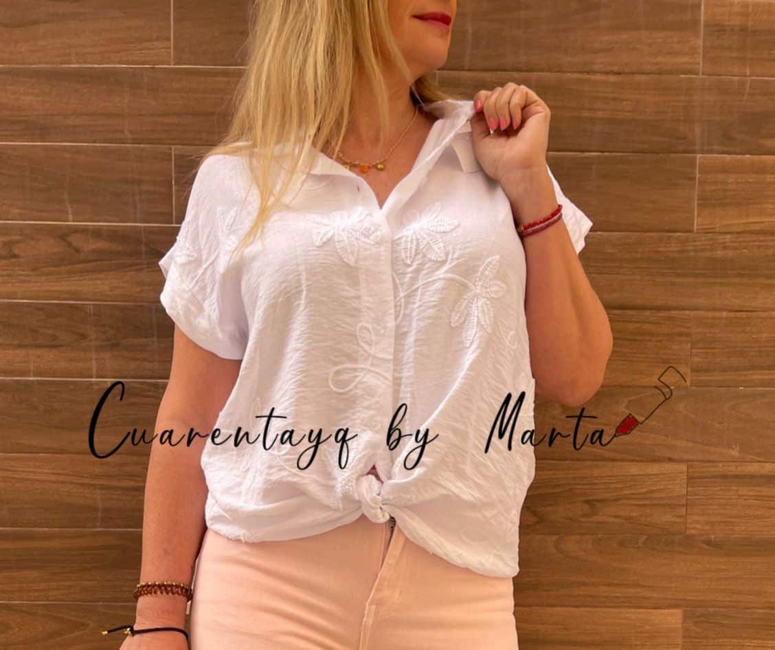 Con bordado floral en parte frontal.